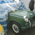 Fuimos todos escoltando al Patriota remolcado por Matías hasta su nido, llegamos sin novedad, y se estacionó al lado de dos autos Triumph Herald.
